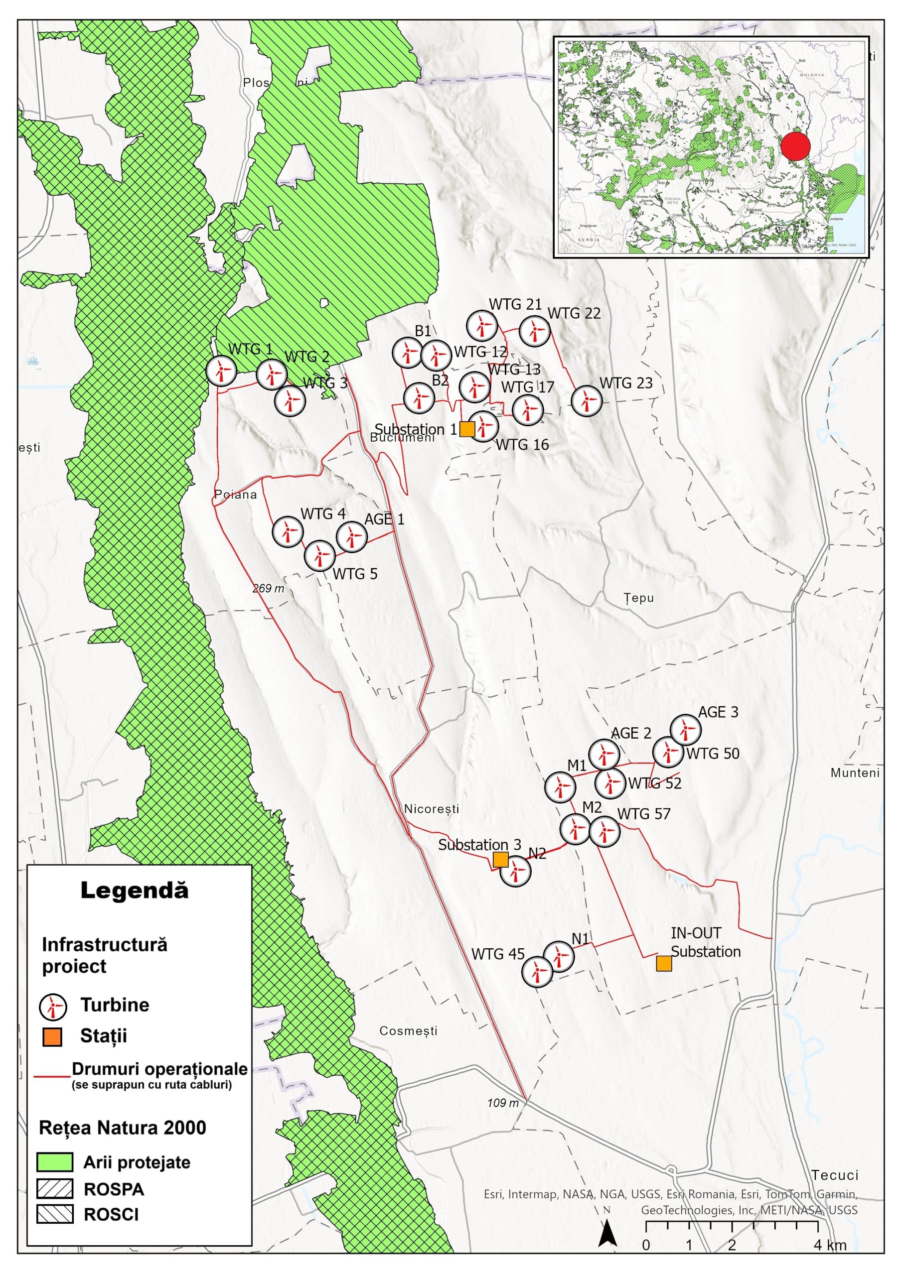 Proiectul prevede construirea unui parc eolian cu o putere instalată totală de 155 MW